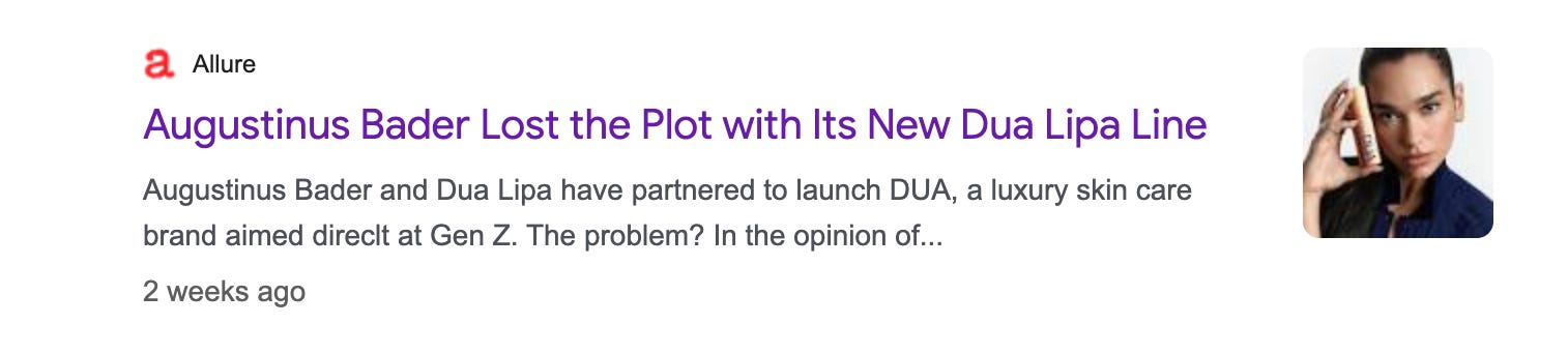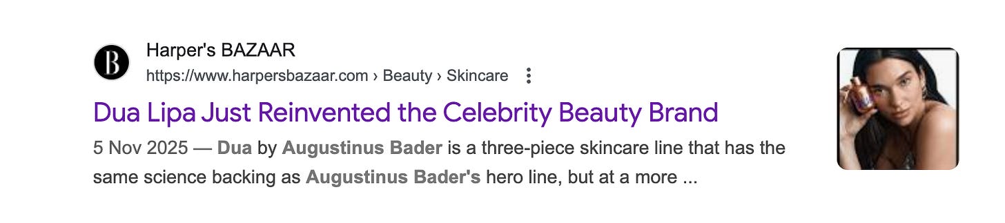 Dua by AB Science has sparked mixed reactions across social media and the press, dividing people into two clear camps: those who would donate a rib to look like Lipa and relish the chance to own a slice of Augustinus Bader without as many zeros… and those who see it as yet another celebrity cash grab that cheapens the pedigree of the core Bader brand.