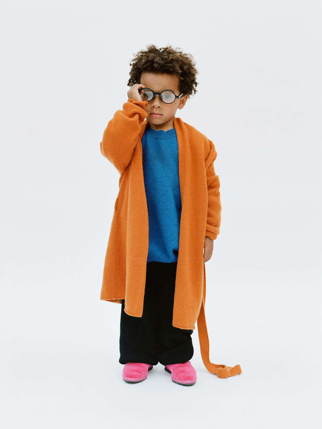 Wholesale partners such as MyTheresa and Net-a-Porter still sell a range of items from The Row Kids, including a cashmere beanie for the bargain price of $235 (reduced from $583), organic cotton jersey tanks and my personal favourite: the Friulane velvet loafers which you can pair with an indigo robe to transform your child into a miniature Hugh Hefner.