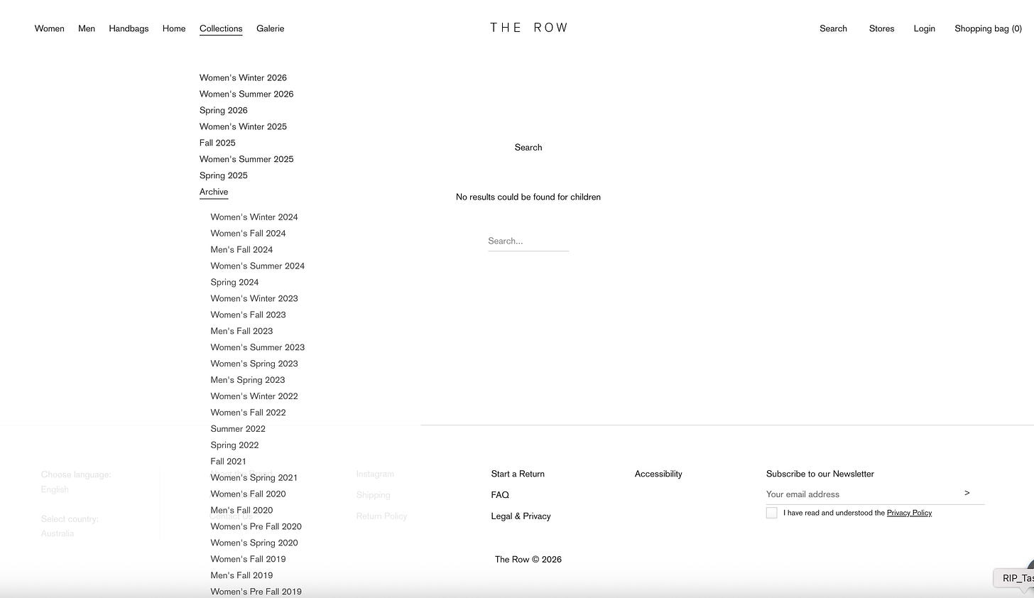 Most baffling of all: when I typed children and kids into The Row’s website search bar, nothing came up.