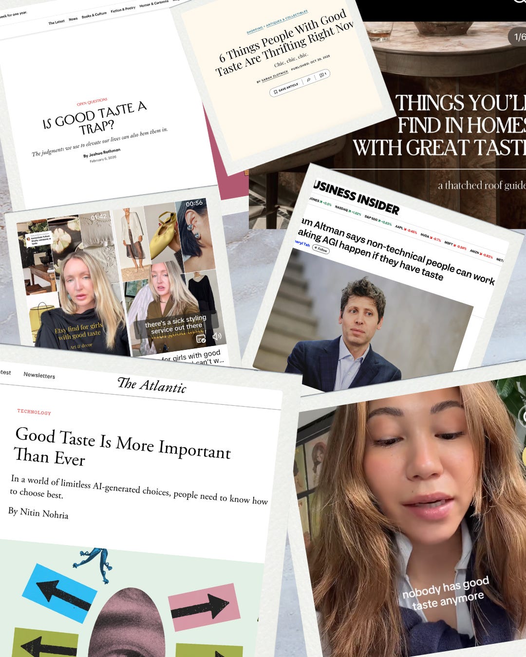 In the 2020s, taste became a vessel for banal Pinterest boards and Instagram carousels, pompous podcasts and contrived think pieces about what it is, what it isn’t, who has it and how one cultivates it.
