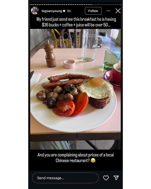 In September, the pair were engaged in social media furor after Young posted a photo of a meal from Café Cressida on his Instagram story, questioning the expensive price point, which led to Wood posting to his Instagram profile with a lengthy caption defending the price and explaining the context and reasons behind it.