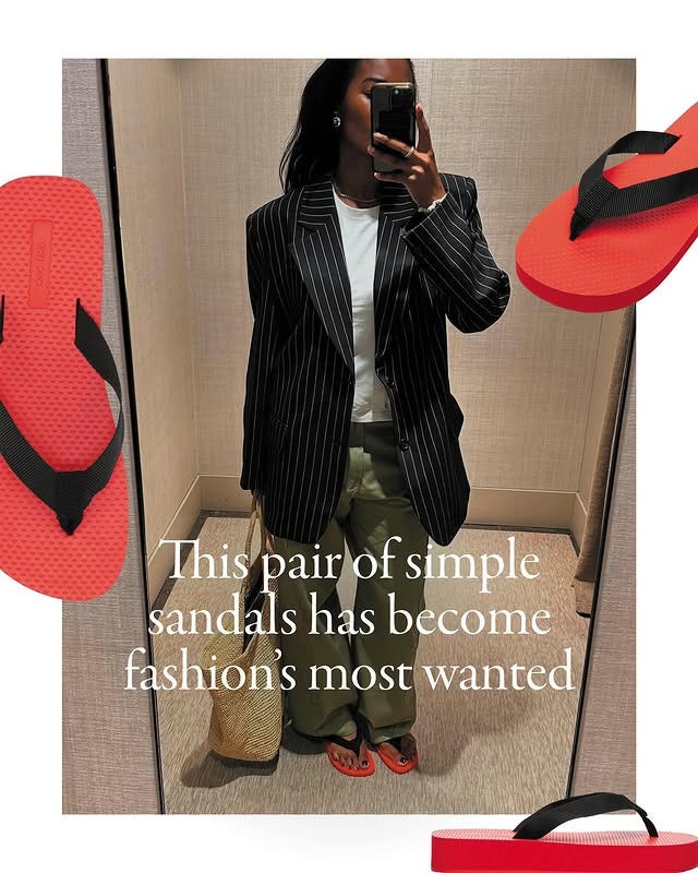 Not to mention the eye-watering price for the “shoe of the summer”—a pair of red rubber flip-flops that could easily be mistaken for the kind sold at a local Amcal pharmacy.